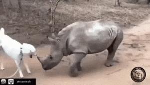 Rhinoceros and dog friends