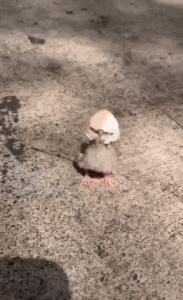 Chick was born with a helmet